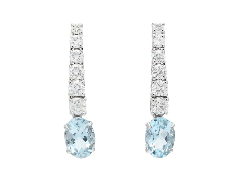 ÖRHÄNGEN, 18K vitguld, 12 briljantslipade diamanter ca 0,72 ctv, ca TW-TCr/P, 2 akvamariner ca 1,51 ctv, stift, längd 25 mm, vikt 3,0 g.