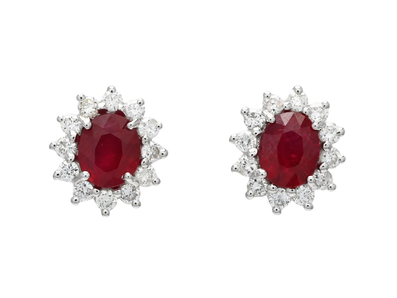 ÖRHÄNGEN, 18K vitguld, 24 briljantslipade diamanter ca 0,39 ctv, ca TW-TCr/SI-P, 2 ovalslipade rubiner ca 1,21 ctv, stift, vikt 1,9 g.