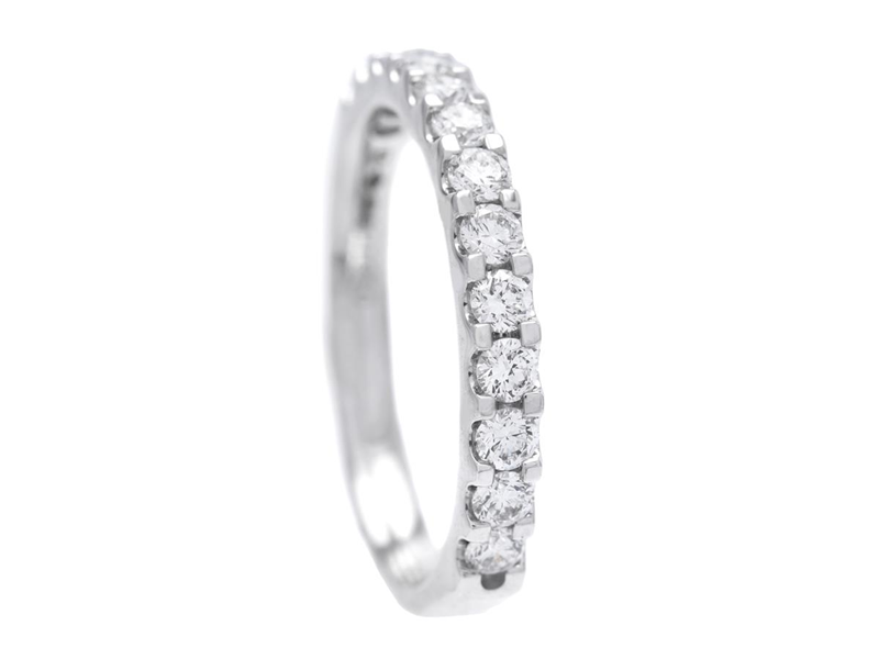 ALLIANSRING, platina, 13 briljantslipade diamanter ca 0,50 ctv, ca TW-W/VS-SI, storlek 16,5+ mm, vikt 3,8 g.