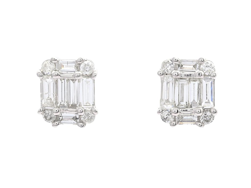 ÖRHÄNGEN, 18K vitguld, 12 baguetteslipade diamanter och 8 briljantslipade diamanter ca 0,76 ctv, ca W-TCr/SI-P, stift, mått 8,0 x 7,0 mm, vikt 1,9 g.