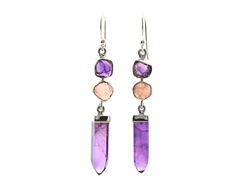 ÖRHÄNGEN, sterlingsilver, ametist och rosenkvarts, krokar, längd 55,0 mm, vikt 6,5 g.