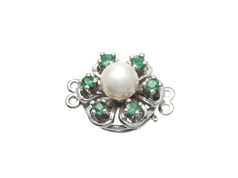 LÅS, sterlingsilver, 2 rader, odlad pärla, smaragder, mått ca 12,5 mm, vikt 2,0 g.