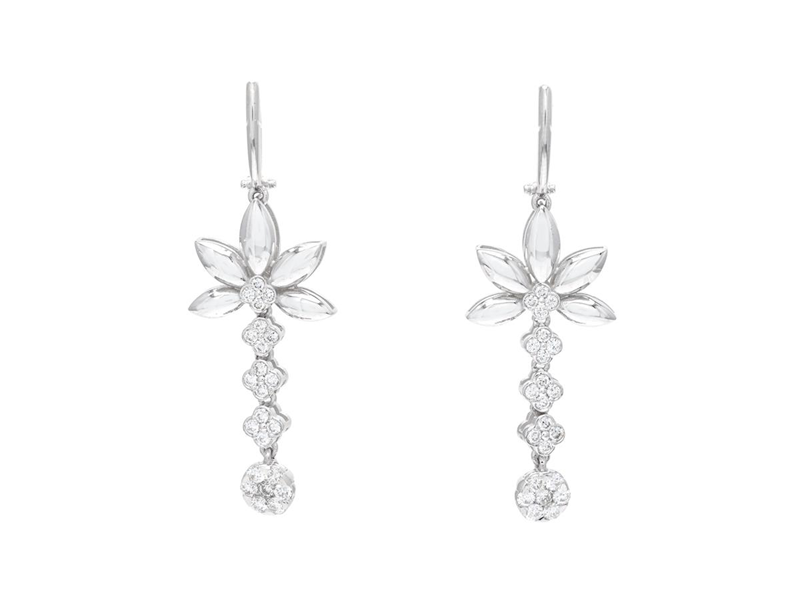 ÖRHÄNGEN, 18K vitguld, 46 briljantslipade diamanter ca 1,15 ctv, ca TW-TCr/VS-SI, stift, längd 50,0 mm, vikt 8,9 g, några diamanter med ytdefekter.