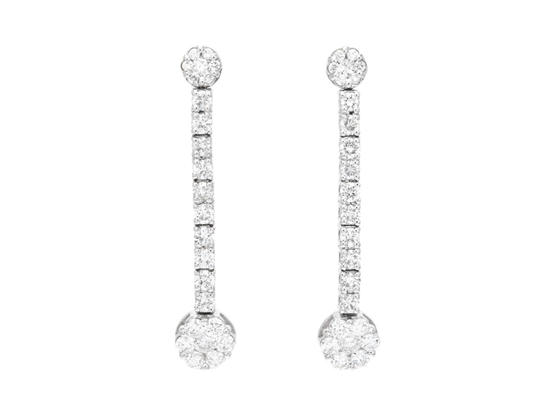 ÖRHÄNGEN, 18K vitguld, briljantslipade diamanter ca 0,98 ctv, ca TW-TCr/VS-SI, stift, längd 30,0 mm, vikt 2,9 g, enstaka diamant har ytskador.