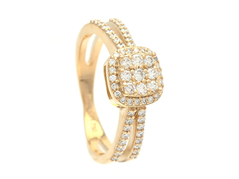 RING, 18K guld, briljantslipade diamanter ca 0,48 ctv, ca TW-TCr/SI, storlek 17+ mm, vikt 4,4 g, några diamanter har ytdefekter.