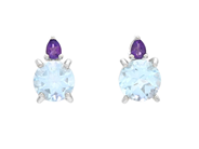 ÖRHÄNGEN, 18K vitguld, runda fasettslipade blå topaser och droppslipade ametister, stift, höjd 9,5 mm, bredd 6,0 mm, vikt 1,9 g.