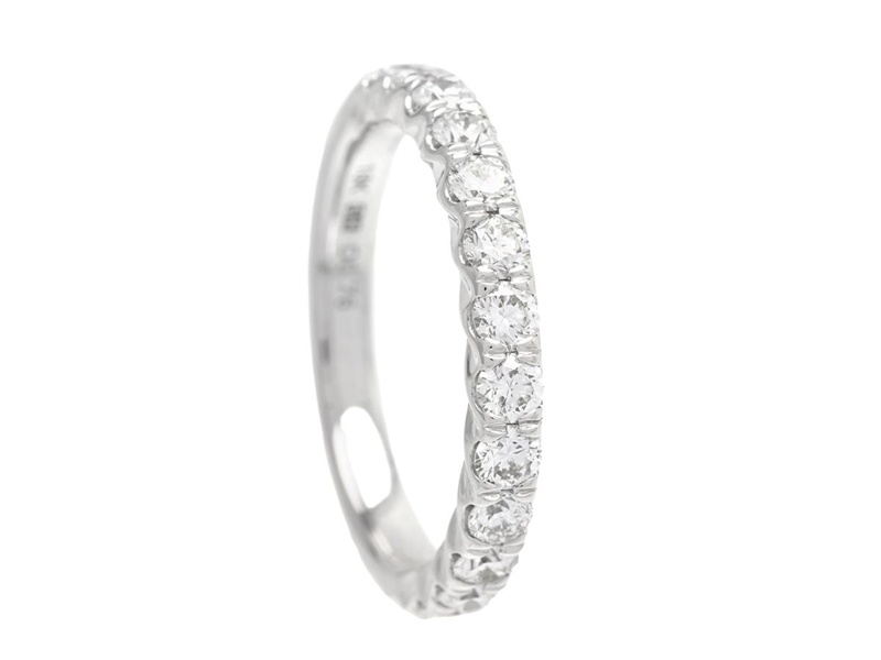 ALLIANSRING, 18K vitguld, 13 briljantslipade diamanter ca 0,76 ctv, ca TW-TCr/VS-SI, storlek 16,75 mm, vikt 4,1 g.