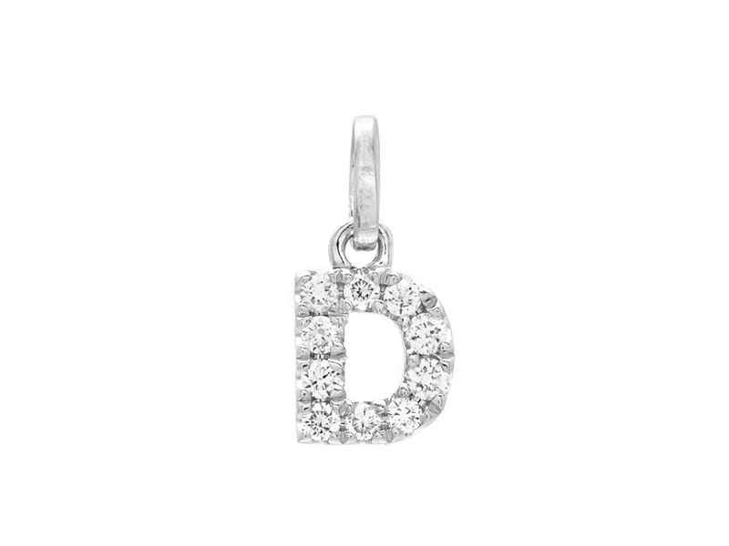 BOKSTAVSHÄNGE, bokstav D, 18K vitguld, 10 briljantslipade diamanter ca 0,08 ctv, ca W/VS-SI, höjd 5,5 mm, bredd 5,0 mm, vikt 0,3 g.