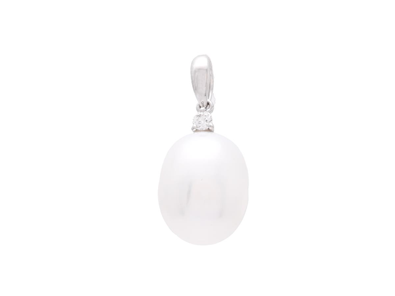 PÄRLHÄNGE, 18K vitguld, oval odlad sötvattenspärla ca 8,7 mm, briljantslipad diamant ca 0,03 ct, ca W/VS, vikt 1,4 g.