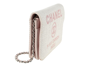 CHANEL, VÄSKA, Wallet on Chain, Woven Straw, vit bast, ljusrosa skinn, silverfärgade beslag, 19x12,5x4 cm, hologrammärkt 22098553, år 2016, cert. Good Condition.