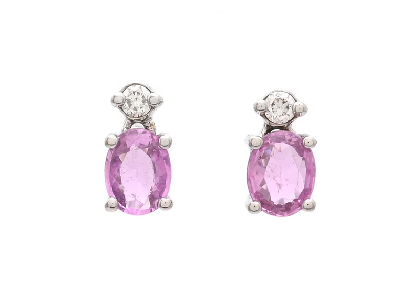 ÖRHÄNGEN, 18K vitguld, ovala fasettslipade rosa safirer ca 0,44 ctv, 2 briljantslipade diamanter ca 0,03 ctv, ca TCr-Cr/VS-SI, stift, höjd 6,5 mm, vikt 1,0 g.