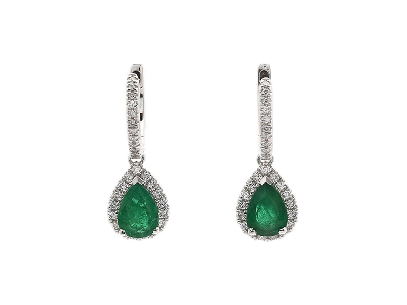 ÖRHÄNGEN, 18K vitguld, 2 droppslipade smaragder ca 1,24 ctv, 58 briljantslipade diamanter ca 0,31 ctv, ca TW-W/VS, stift, längd 21,0 mm, vikt 3,8 g.