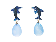 MANDELSTAM, örhängen, Delfin, sterlingsilver/18K guld, agat, emalj, höjd 37 mm, stift, originaletui.