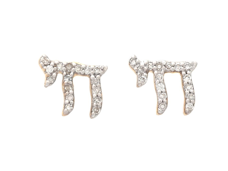 ÖRHÄNGEN, 18K guld, Chaitecken, åttkantslipade diamanter ca 0,10 ctv, stift, mått ca 7,0 x 6,0 mm, vikt 1,0 g.
