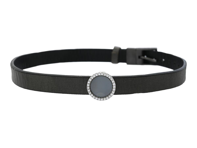 OLE LYNGGAARD, Sweet Spot Charm, 18K vitguld, månsten, briljantslipade diamanter ca 0,29 ctv, ca TW/VS, armband läder, justerbar längd på armbandet.