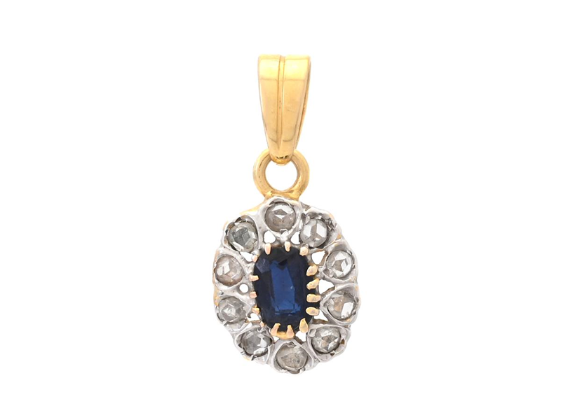 CARMOSÉHÄNGE, 18K guld, rosenslipade diamanter ca 0,20 ctv, safir, höjd 19,0 mm ink ögla, vikt 1,0 g.