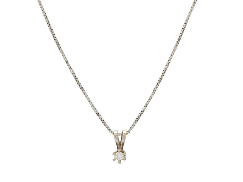 ENSTENSHÄNGE MED KEDJA, 18K vitguld, briljantslipad diamant 0,04 ct, ca TW/VS, Strömdahl, venezialänk 38 cm, Balestra, vikt 2,1 g.