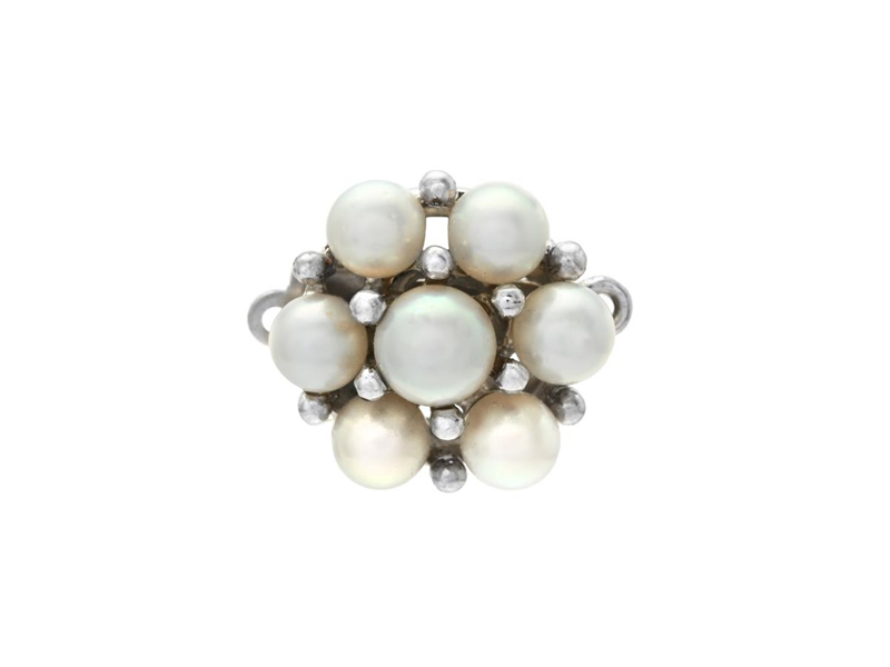 LÅS, 1- rad, 18K vitguld med 7 odlade pärlor 4-5 mm, vikt 3,4 g, diameter 12 mm