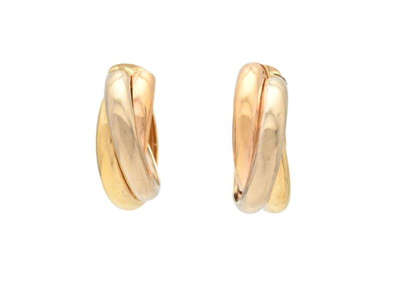 ÖRHÄNGEN, 18K trefärgat guld, snurrebussar i silver resp vitmetall, stift, höjd 18,0 mm, vikt 3,6 g.
