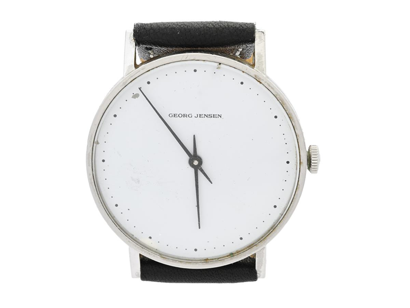 GEORG JENSEN, design Henning Koppel, Cal Peseux 7001, Ref nr. 221 HK, Boett nr. 3219 / 7908-7001, herrur, 32 mm, stål, manuell, mineralglas, renoverad urtavla, skadad urtavla, läderband, ca 1980.