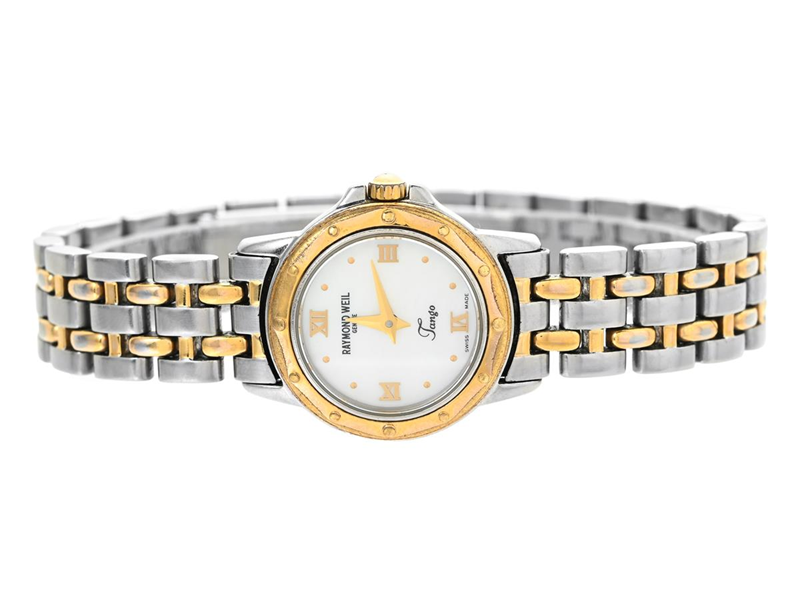 RAYMOND WEIL, Geneve, Tango, Serie nr. X077632, Boett nr. 5860, damur, 23 mm, bicolour, quartz, safirglas (nagg), pärlemorurtavla, originallänk, viklås, ca 2000, box, ytterkartong.