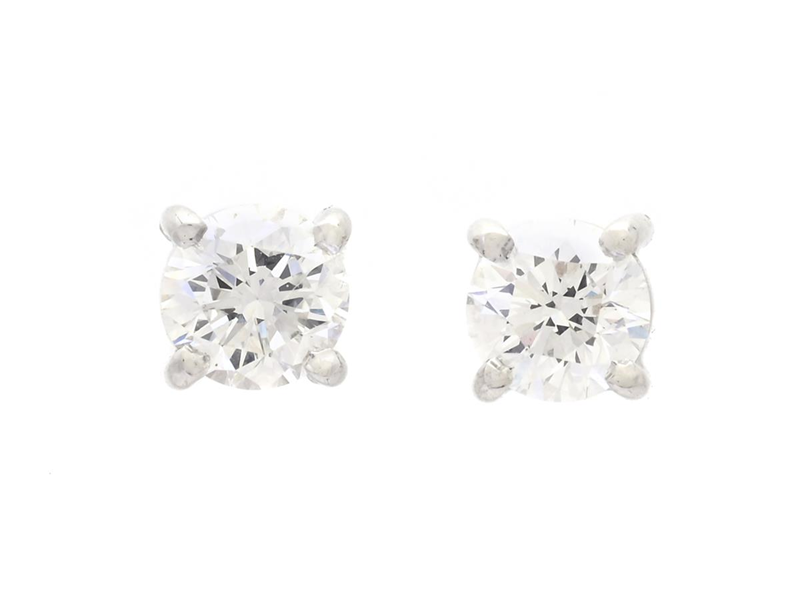 ENSTENSÖRHÄNGEN, 14K vitguld, briljantslipade diamanter ca 0,90 ctv, ca TW/VS, vikt 1,6 g, skruvstift, diamanterna har små nagg på kuletten.