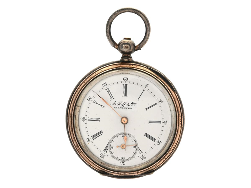 A.HOFF & CIE, Trondhjem, mormorsur, 40 mm, Boett nr. 84945, silver (800), cylindergång, nyckeldragare, ca 1930.