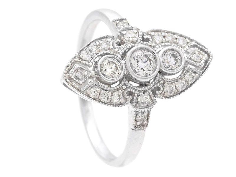 RING, 18K vitguld, 21 briljantslipade diamanter ca 0,39 ctv, ca TW-W/SI-P, stl 16,5 mm, vikt 3,5 g.