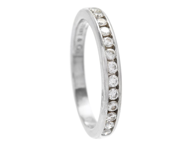 TIFFANY & CO, alliansring, platina, briljantslipade diamanter ca 0,24 ctv, ca TW/VS, stl 15,25 mm, vikt 3,3 g, originaletui.