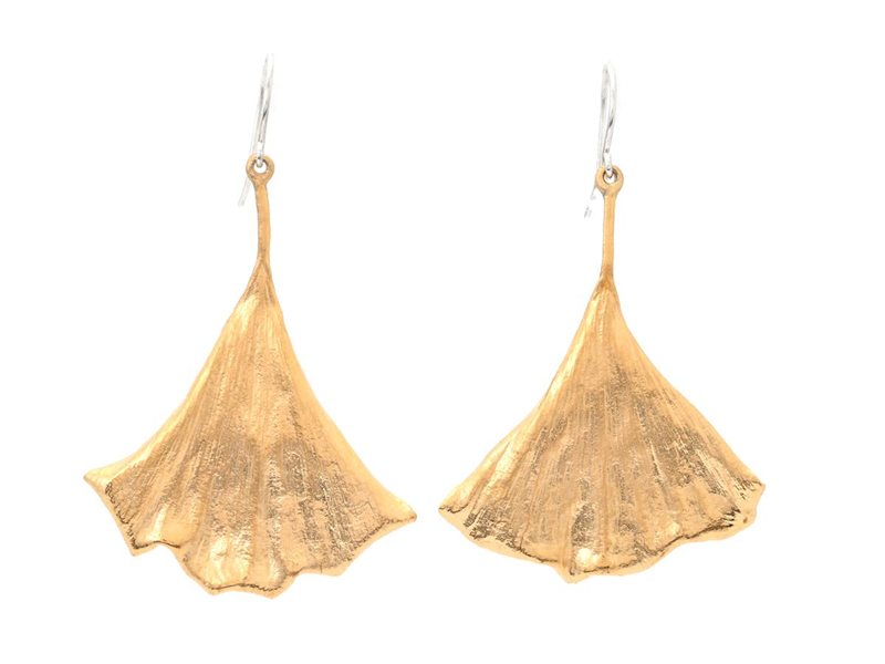 ÖRHÄNGEN, guldpläterade ginkgoblad, Bluealg design, krokar i sterlingsilver, längd ca 65,0 mm, vikt 5,6 g.