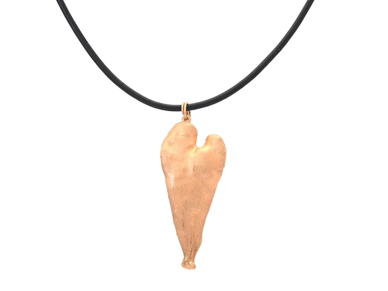 HÄNGE, guldpläterad mistel, mått ca 55,0 x 25,0 mm, Bluealg, lädersnöre med silverlås, längd 41-49 cm, vikt 10,6 g.