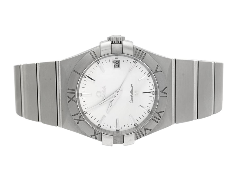 OMEGA, Constellation, Cal 4564, Serie nr. 91874411, PIC nr. 123.10.35.60.02.001, Ref nr. ST 396.2010, Boett nr. 396.2010, herrur, 35 mm, stål, quartz, safirglas, datum, gravyr, integrerad originallänk, viklås, Ref nr. 1656/981, ca 2016, box (skadad).