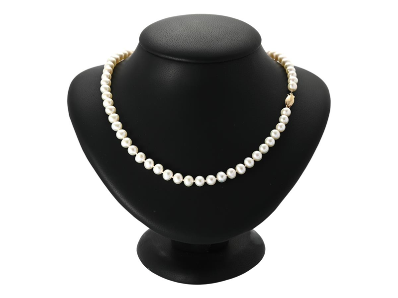 PÄRLCOLLIER, odlade sötvattenspärlor ca 6,5 mm, off round, lås i 14K guld, längd 45 cm, vikt 23,9 g.