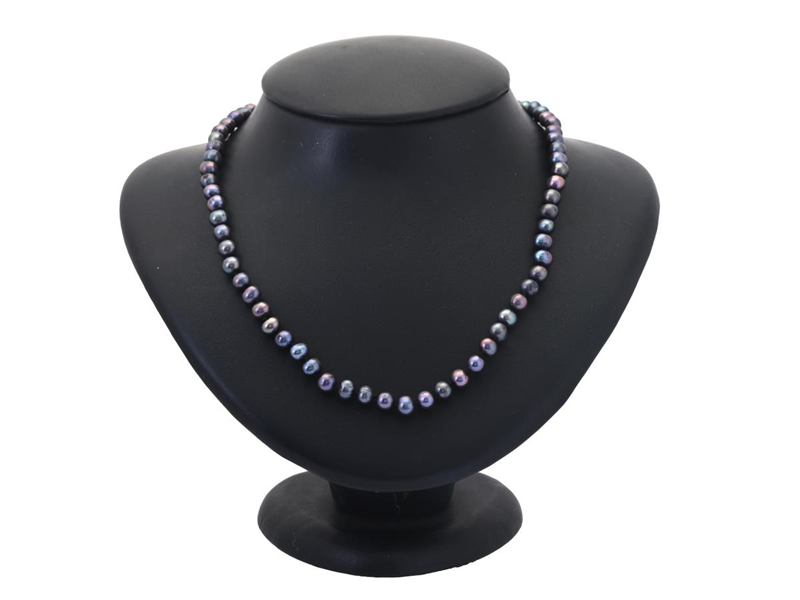 COLLIER, sterlingsilver, odlade färgade sötvattenspärlor ca 6 mm, grå, längd 45 cm.