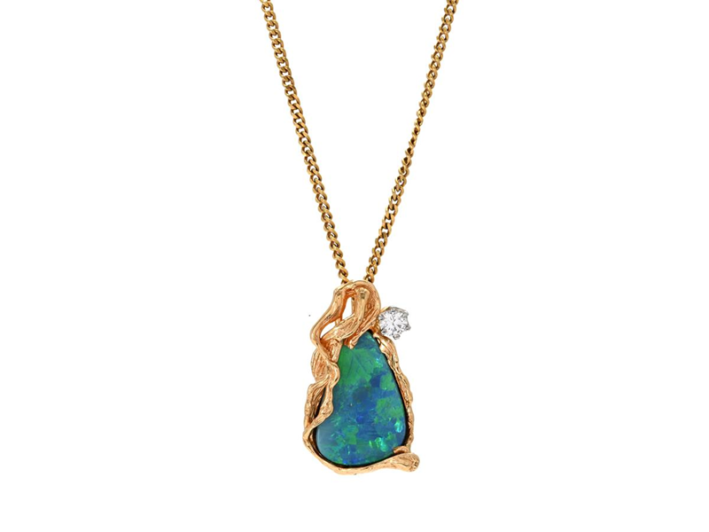SIEGFRIED EGGER, hänge med kedja, 18K guld, opaldublett, briljantslipade diamanter ca 0,10 ct, ca TW/VS, Stockholm 1988, längd 50 cm, vikt 7,2 g.