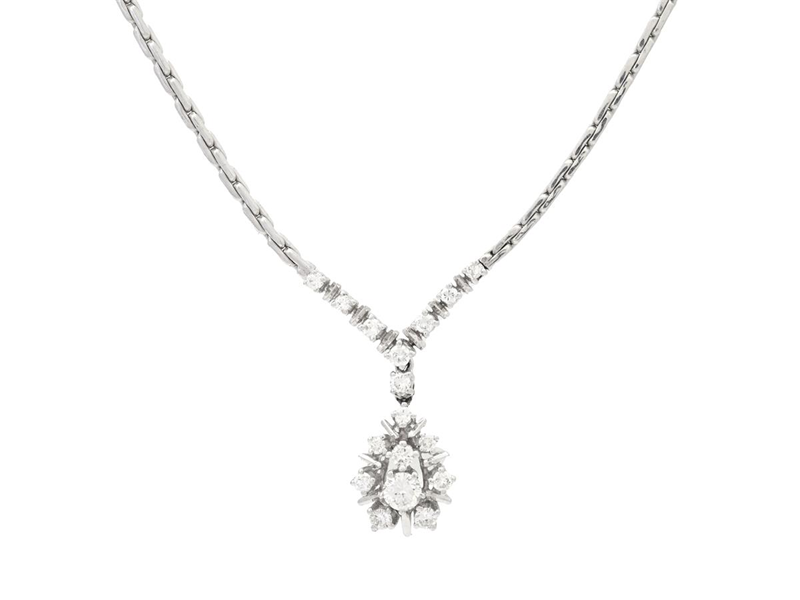 COLLIER, 18K vitguld, 17 briljantslipade diamanter ca 0,55 ctv, ca TW-W/VS-SI, längd 42 cm, vikt 15,7 g.