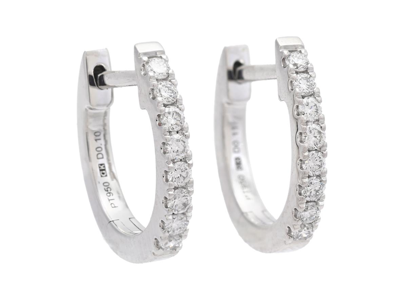ÖRHÄNGEN, platina, 16 briljantslipade diamanter ca 0,22 ctv, ca TW/VS-SI, stift, höjd 13,0 mm, vikt 3,3 g.