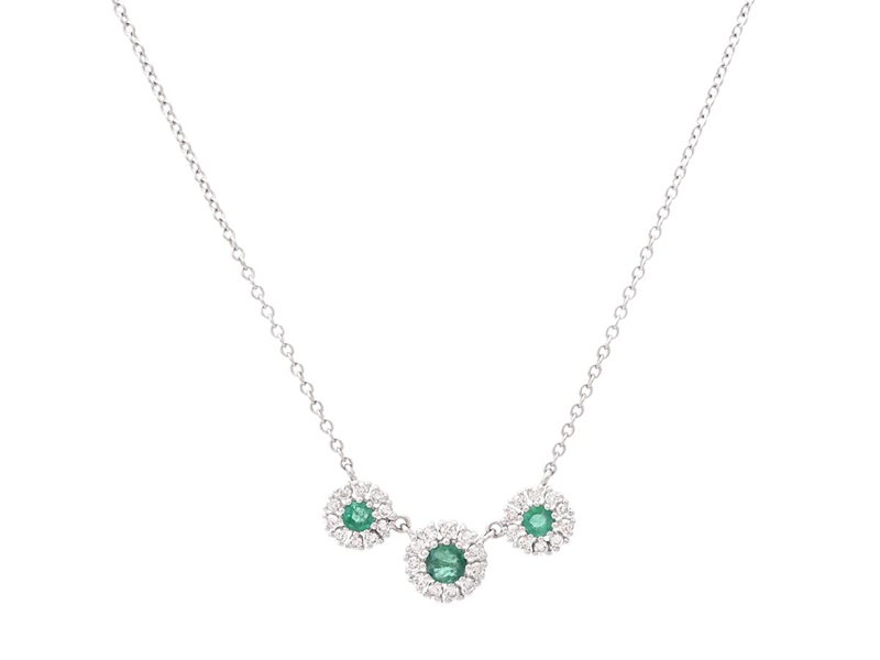 COLLIER, 18K vitguld, smaragder 0,37 ctv, 31 briljantslipade diamanter 0,27 ctv, ca W-Cr/SI, längd 40/45 cm, vikt 3,1 g, flera diamanter med naturaler och ytdefekter.