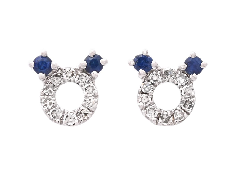 ÖRHÄNGEN, 18K vitguld, 4 safirer 0,09 ctv, 20 åttkantslipade diamanter 0,08 ctv, stift, höjd 6,0 mm, vikt 0,8 g, en safir trasig.