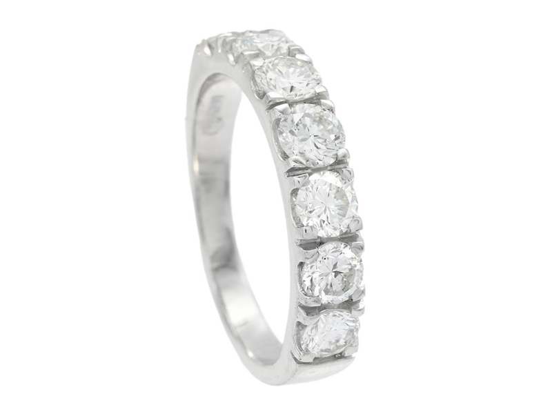 ALLIANSRING, 18K vitguld, briljantslipade diamanter ca 1,43 ctv, ca R-TCr/VS-SI, stl 16,75 mm, vikt 4,1 g, diamanterna har nagg på kuletterna.
