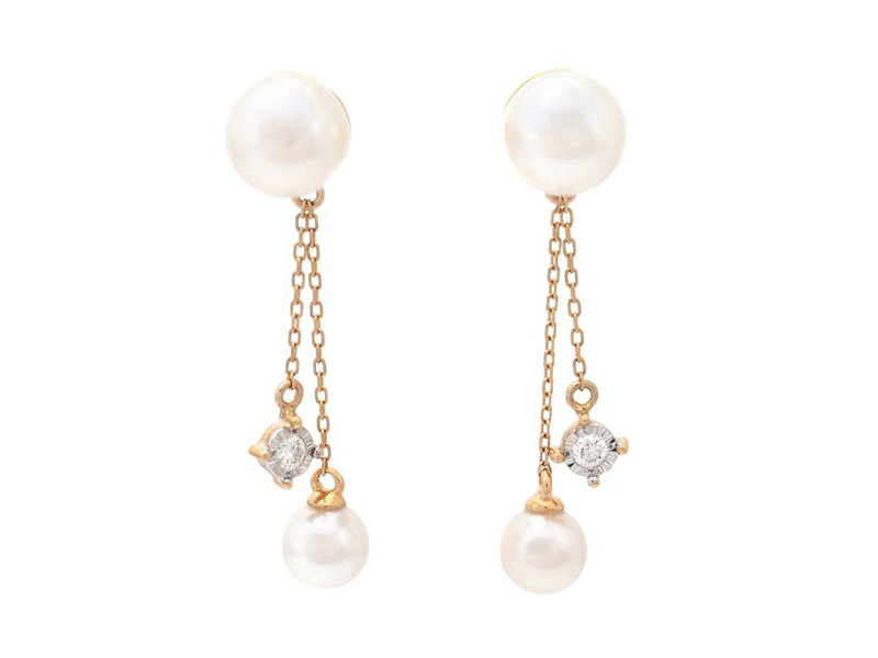 PÄRLÖRHÄNGEN, 18K guld, odlade pärlor ca 6,0/4,5 mm, 2 briljantslipade diamanter ca 0,06 ctv, ca W/VS-SI, stift, snurrebussar med hängen, längd 22,0 mm, vikt 2,3 g.