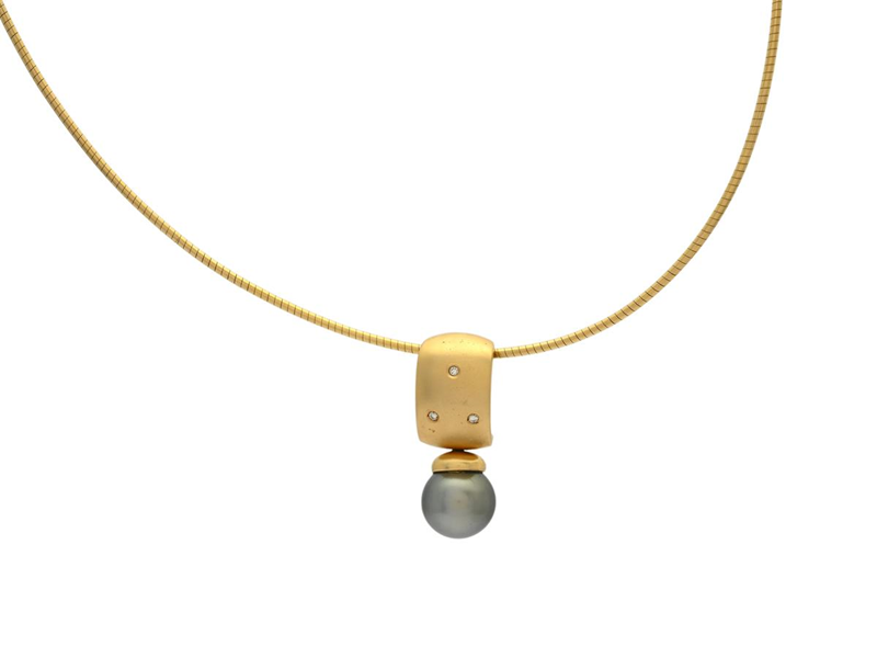 HÄNGE MED KEDJA, 18K guld, odlad tahitipärla ca 8,7 mm, 3 briljanter ca 0,03 ctv, vikt 10,3 g.