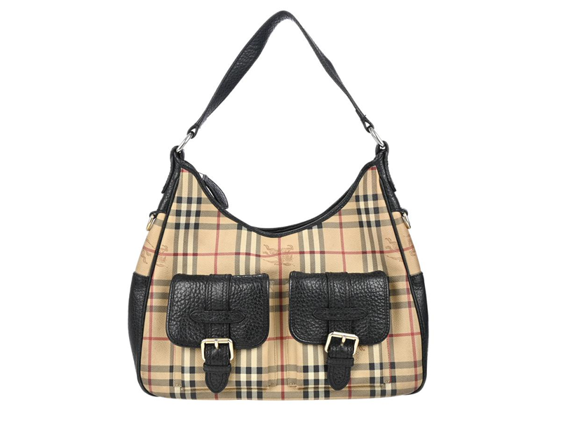 VÄSKA, BURBERRY, Hobo Bag, rutigt canvas, svart läder, guldfärgade beslag, 37x24x10 cm, bruksslitage.