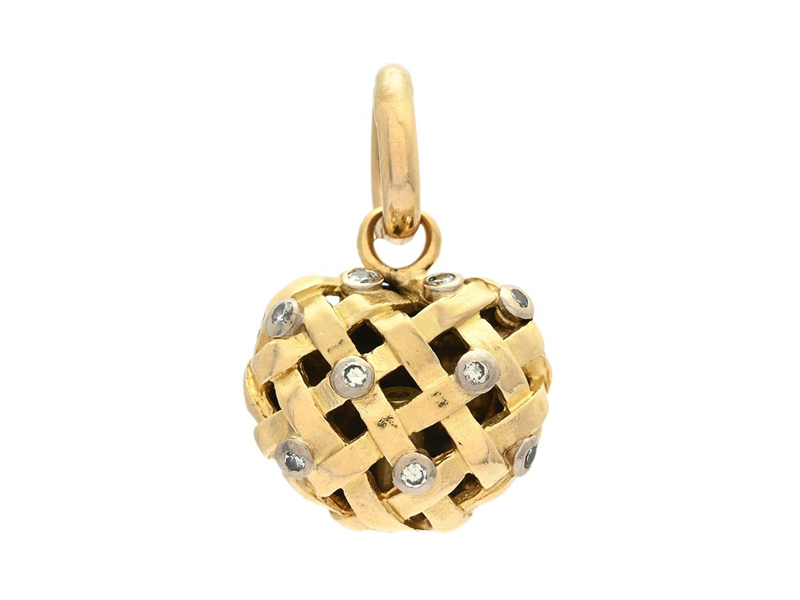 OLE LYNGGAARD, hänge, hjärta, 18K guld, 9 briljantslipade diamanter ca 0,09 ctv, ca TW/VS, höjd 22 mm, vikt 7,3 g, omgjort från lås till hänge, sliten hängögla.