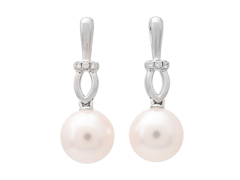 PÄRLÖRHÄNGEN, 18K vitguld, odlade pärlor ca 7,0 mm, 6 briljantslipade diamanter 0,03 ctv, ca W/VS-SI, stift, längd 19,0 mm, vikt 2,7 g.