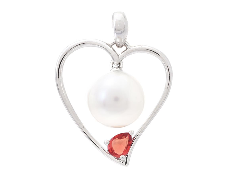 PÄRLHÄNGE, 18K vitguld, South Sea pärla ca 7,6 mm, droppslipad fasettslipad orangeröd safir 0,15 ct, längd 21,0 mm ink ögla, vikt 1,5 g.