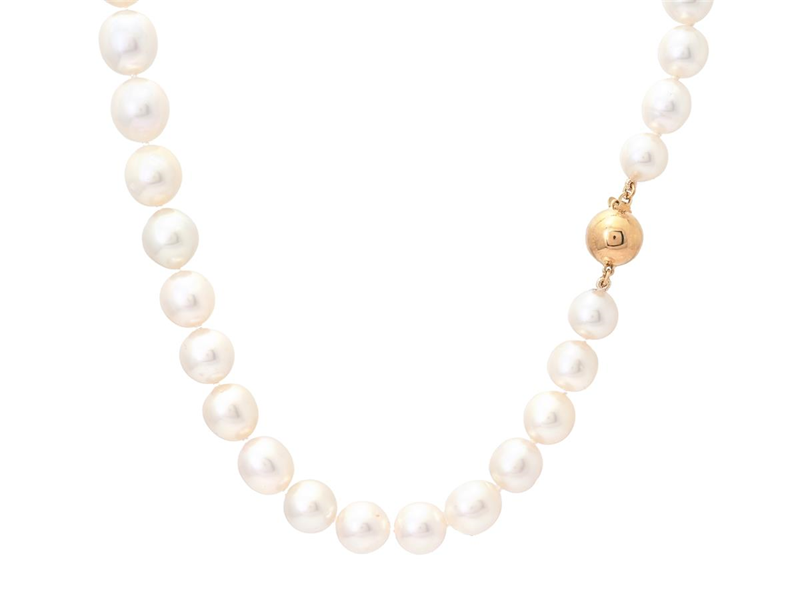 PÄRLCOLLIER, South Sea pärlor, runda till ovala ca 12,4 - 8,6 mm, doserat, lås i 18K guld, knutet, längd ca 46 cm, vikt 63,2 g, någon barock pärla, flera pärlor med mindre ytfel.