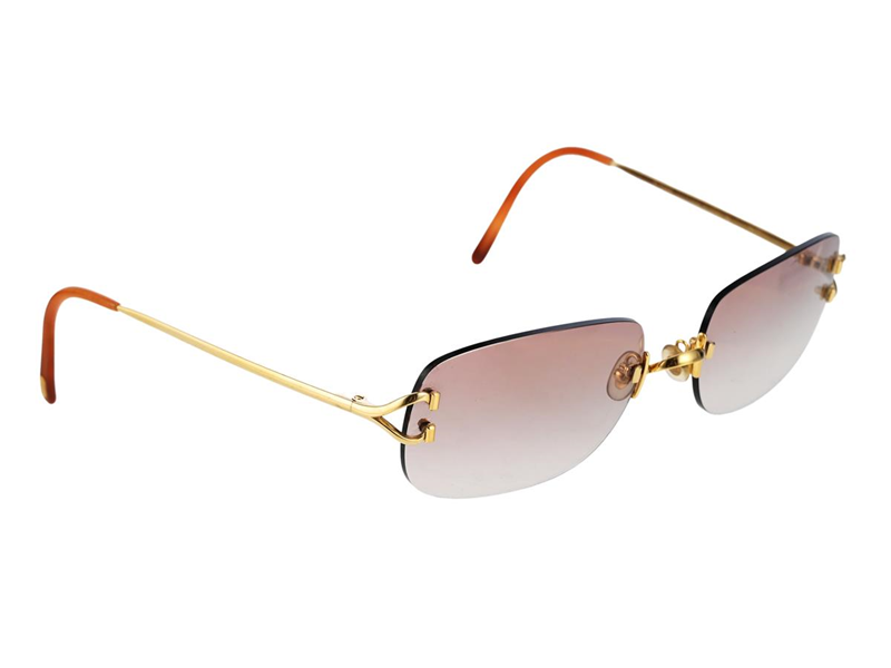 SOLGLASÖGON, CARTIER, 135, 3050936, guldfärgade bågar, bruna glas, etui, kartong, bruksslitage.