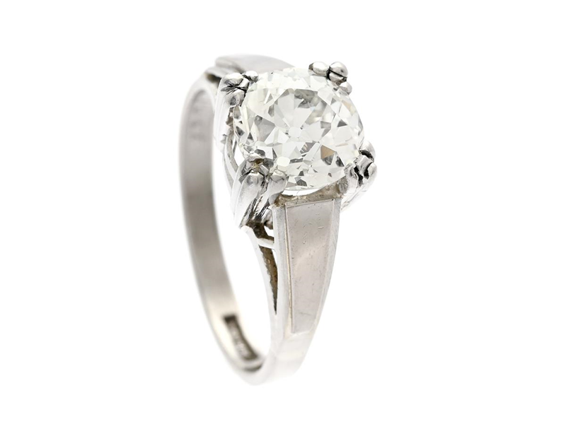 ENSTENSRING, 18K vitguld gammalslipad diamant ca 2,16 ct enligt gravyr, ca TCr(I)/VS1, Kaplans Stockholm 1966, stl 17,5 mm, vikt 5,8 g, diamant med naturaler vid rondisten samt mindre inneslutningar som når upp till ytan vid bordet.
