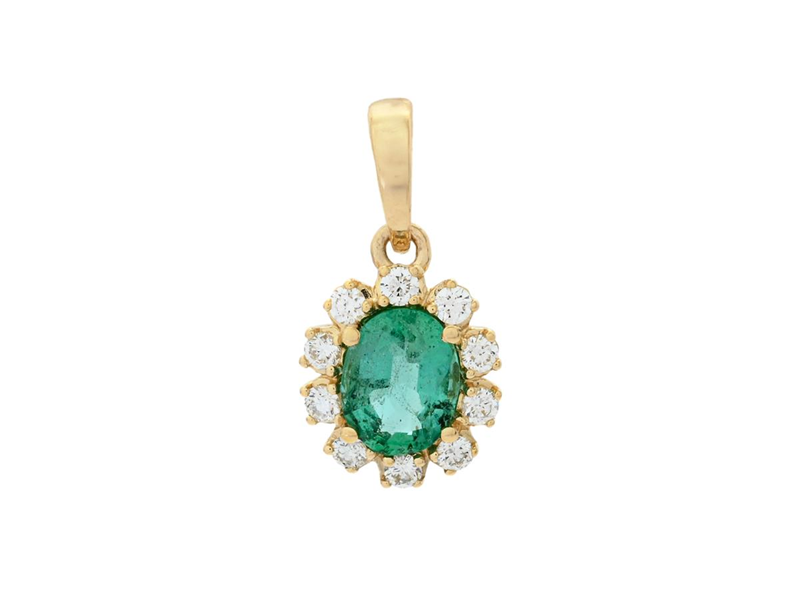 CARMOSÉHÄNGE, 18K guld, oval fasettslipad smaragd ca 0,28 ct, 10 briljantslipade diamanter ca 0,08 ctv, ca W/VS-SI, höjd 7,5 mm, bredd 6,5 mm, vikt 0,5 g.